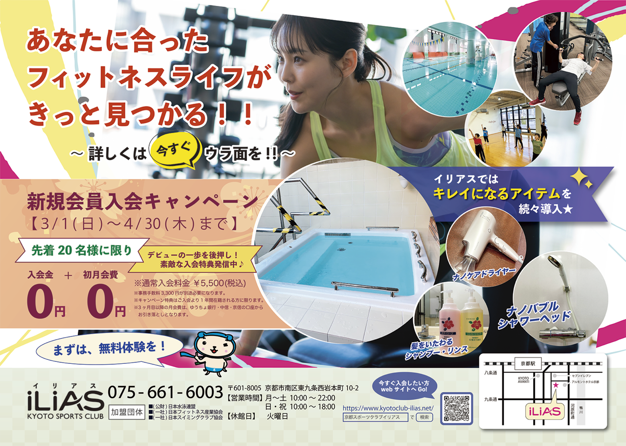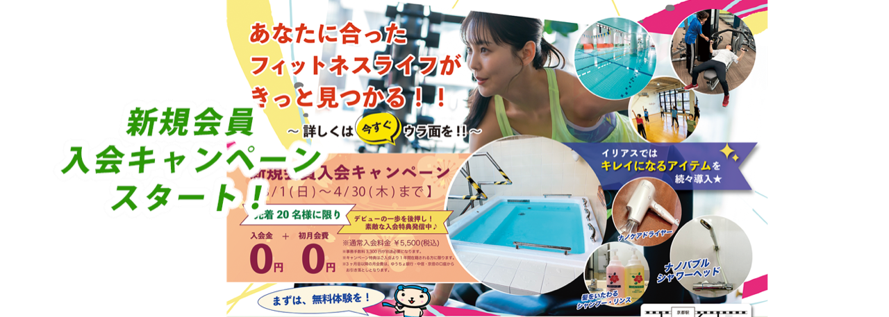 Webサイトに掲載されている全てのコンテンツは、京都スポーツクラブ イリアスの承諾なしに無断転載することはできません。