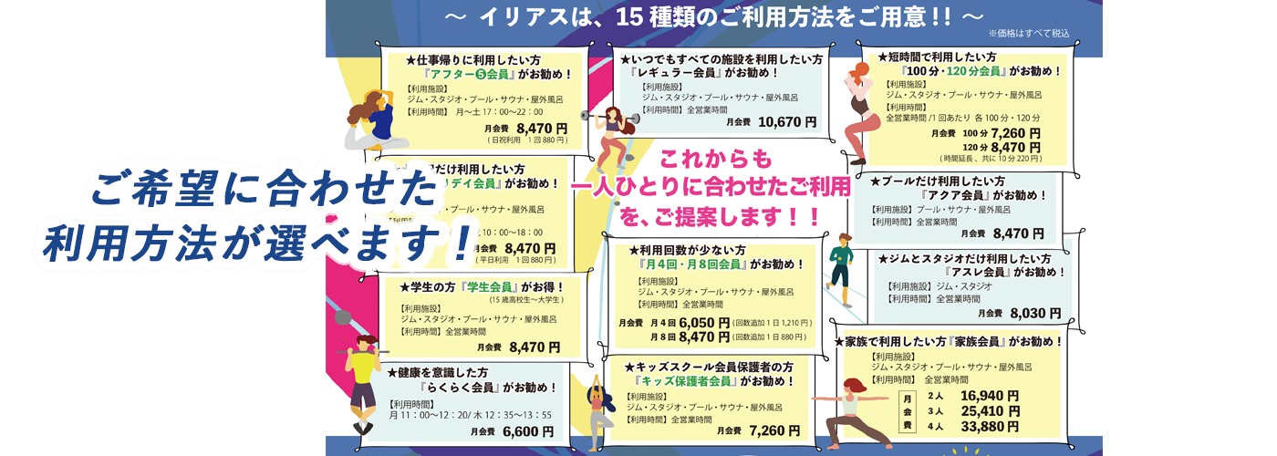 Webサイトに掲載されている全てのコンテンツは、京都スポーツクラブ イリアスの承諾なしに無断転載することはできません。