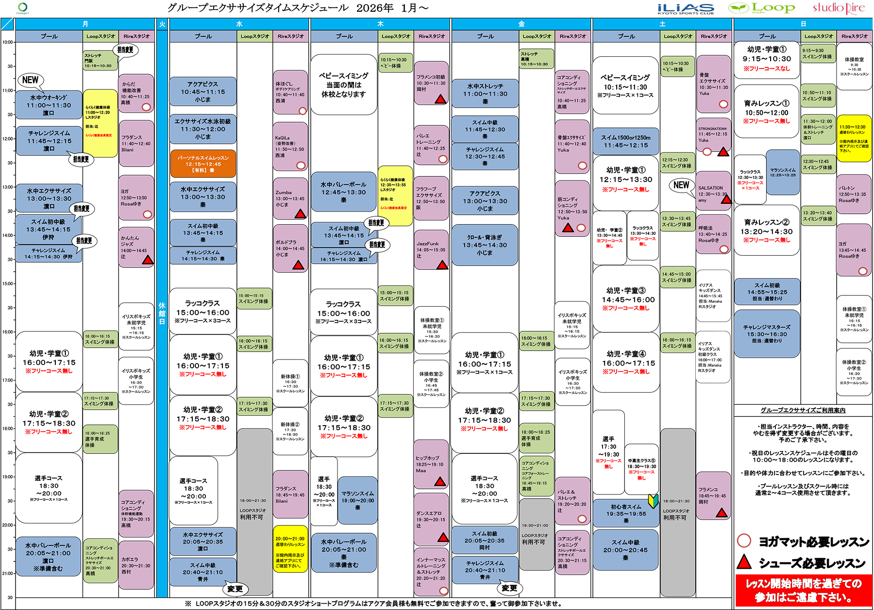 ※ マットのマークの記載があるプログラムは、ご受講の際マットが必要なプログラムです。